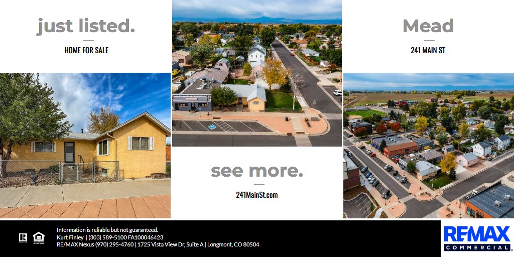 Ah, the possibilities! Rejuvenate or redevelop this downtown 3-BD property with a huge lot and a 1,020 sf detached garage. Zoned Downtown Mixed Use and located on Mead's Main St, this property could be an ideal urban residence, retail store, work shop or office. The property
